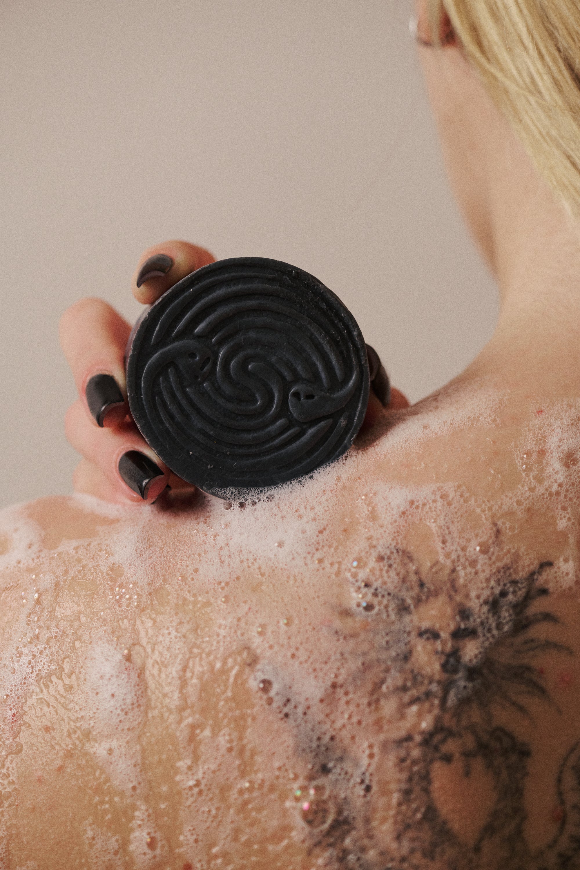 Per l’utilizzo, inumidire il prodotto con acqua e strofinarlo tra le mani o direttamente sulla pelle per ottenere una morbida schiuma bianca. Nonostante la presenza di carbone vegetale, il sapone non produce schiuma nera. Massaggiare delicatamente sul corpo e risciacquare abbondantemente con acqua. Dopo l’uso, conservare il docciaschiuma in un luogo asciutto, preferibilmente su una superficie drenante, per favorirne l’asciugatura e prolungarne la durata.